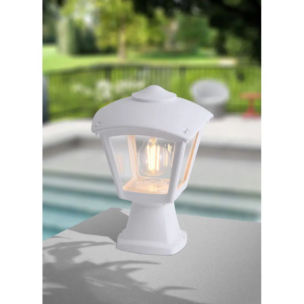 Modern canlandırma tarzında E27 kare fener, darbeye dayanıklı, UV ışınlarına dayanıklı reçineden üretilmiştir, pas ve korozyona dayanıklıdır. Setüstü montajı için uygun modüler tasarıma sahiptir. Yalıtım sınıfı II, koruma sınıfı IP55'tir.