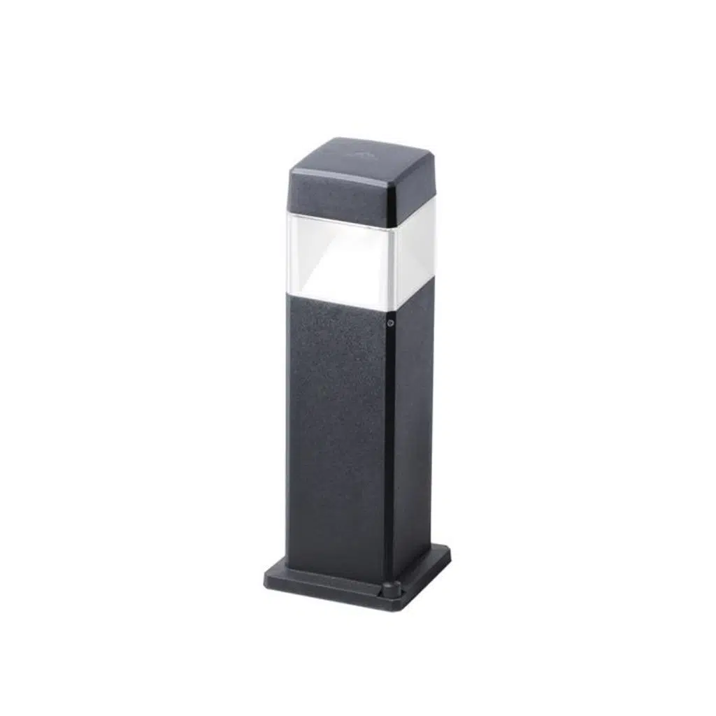 Darbeye dayanıklı reçineden yapılmış, UV ışınlarıyla stabilize edilmiş, pas ve korozyona dayanıklı, modern tarzda mimari LED lambalardan oluşan koleksiyon. Farklı yüksekliklerdeki bariyer gövdesine kazıklı veya duvarlı kurulum için geniş versiyon yelpazesi mevcuttur. Beyaz kare reflektörle donatılmıştır ve ayarlanabilir Kelvinli, TÜV-CB sertifikalı, uzun ömürlü ve yüksek verimli GX53 LED ampullerle birlikte verilir. Yalıtım sınıfı II, koruma derecesi IP55.