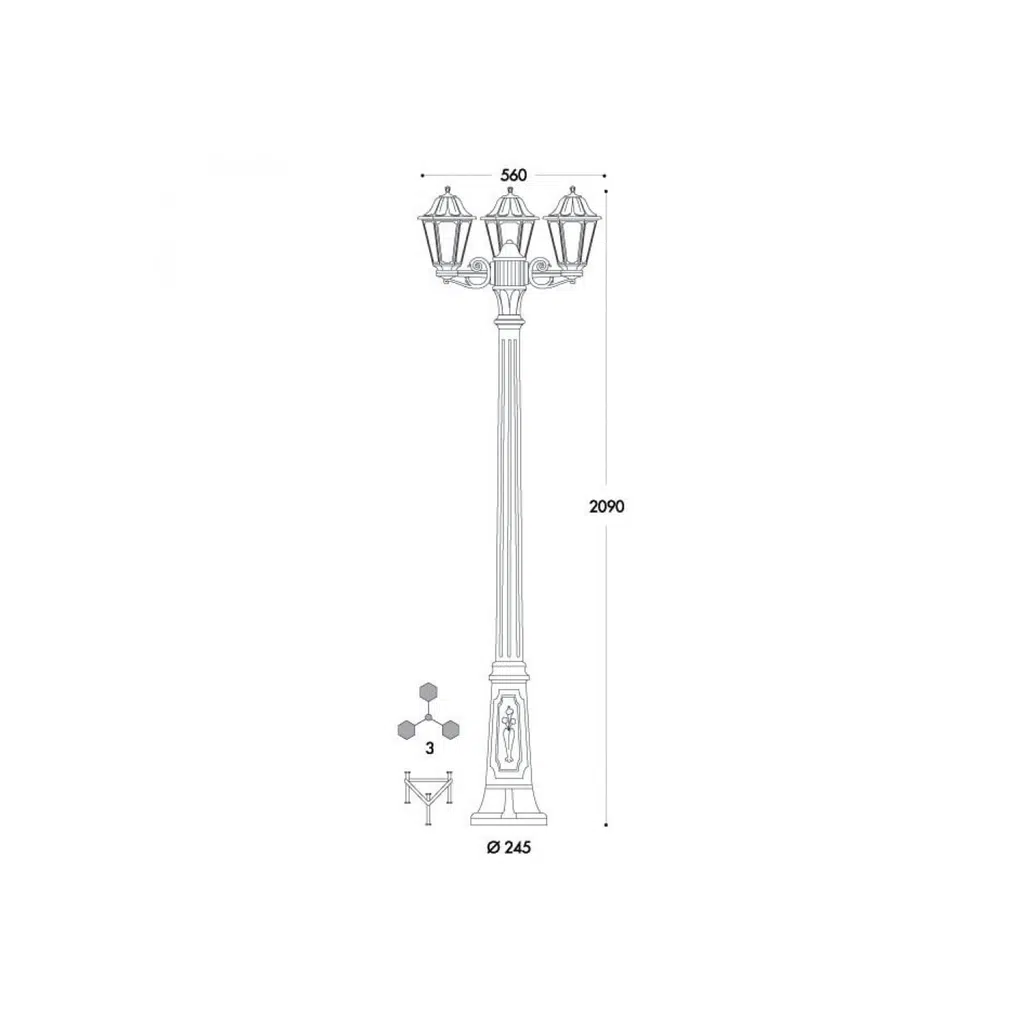 Darbeye dayanıklı, UV ışınlarına dayanıklı reçineden üretilmiş, pas ve korozyona dayanıklı, klasik tarzda E27 altıgen aydınlatma direği. Direk montajı için uygun modüler tasarım. Ayrıca, dış mekan kullanımına uygun, TÜV-CB sertifikalı, uzun ömürlü ve yüksek verimli LED ampullerle birlikte gelir. Yalıtım sınıfı II, IP55 koruma sınıfı.